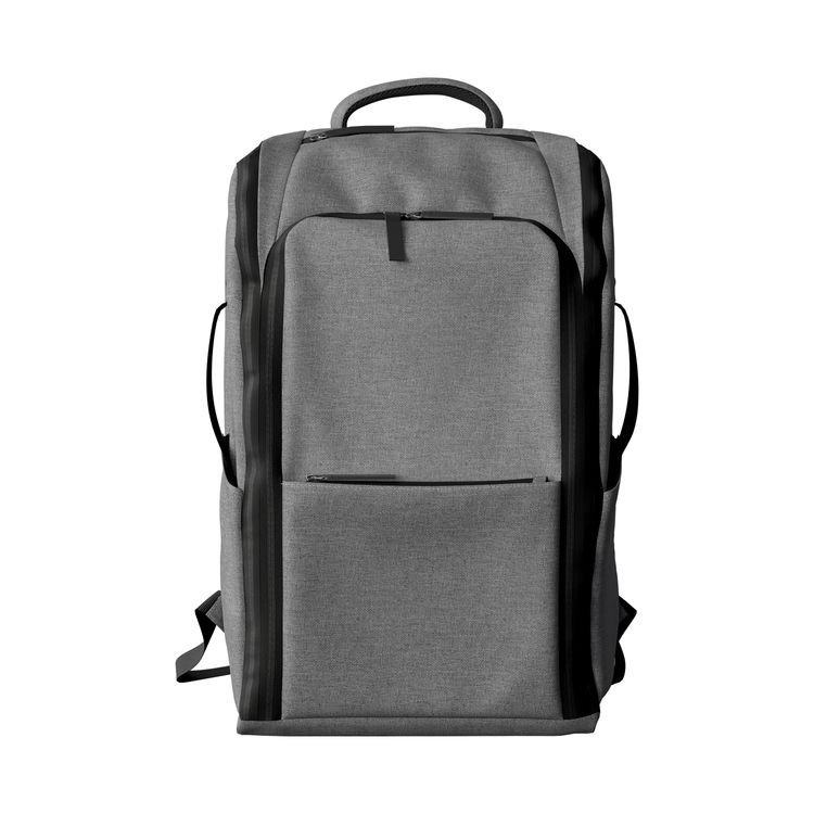 This 14 oz recycled backpack with laptop sleeve for 15" MacBook, features double top handles, two zippered front pockets, two side pockets (large enough to hold a standard bottle), and a trolley-handle sleeve to make moving through travels a breeze.