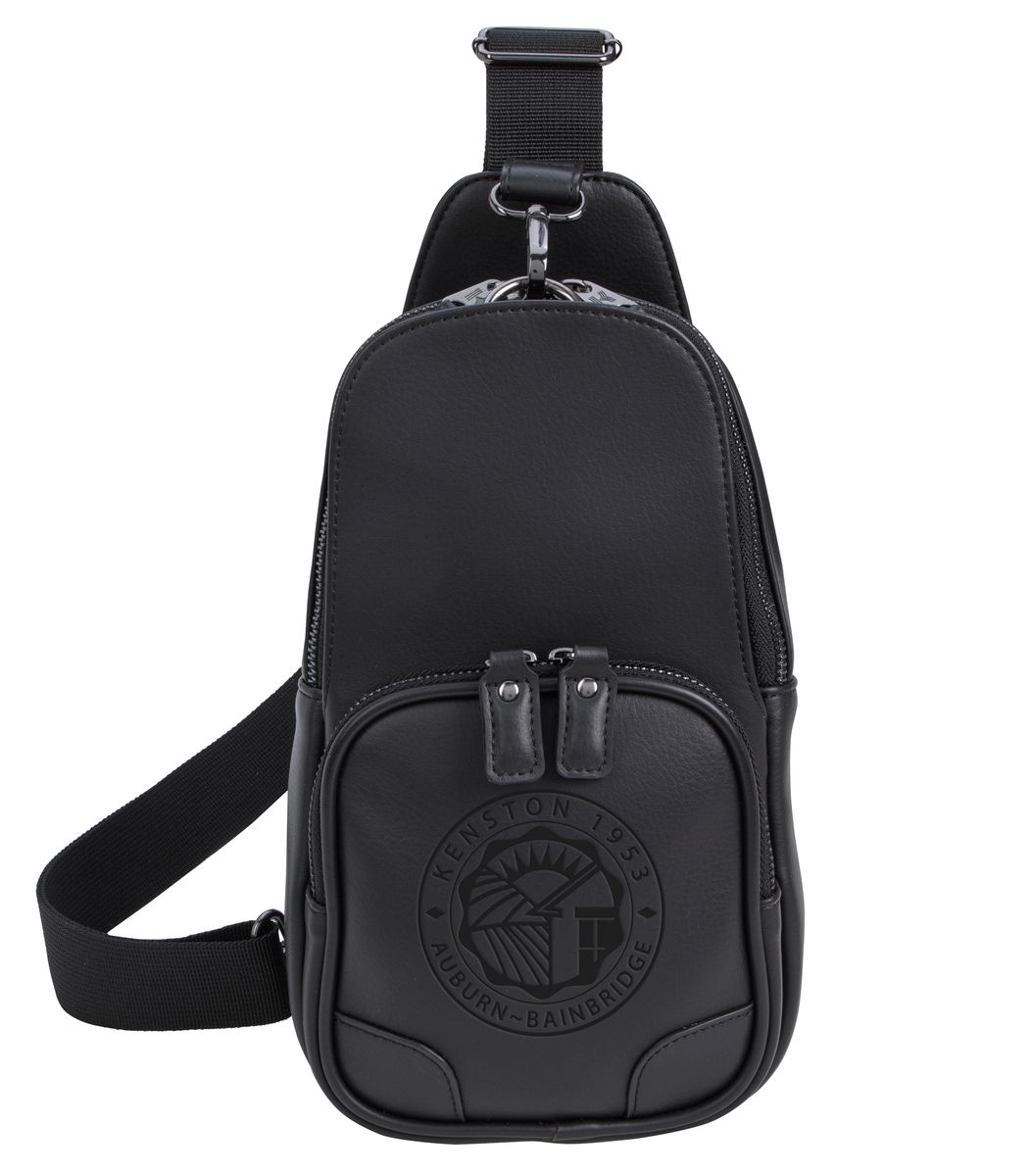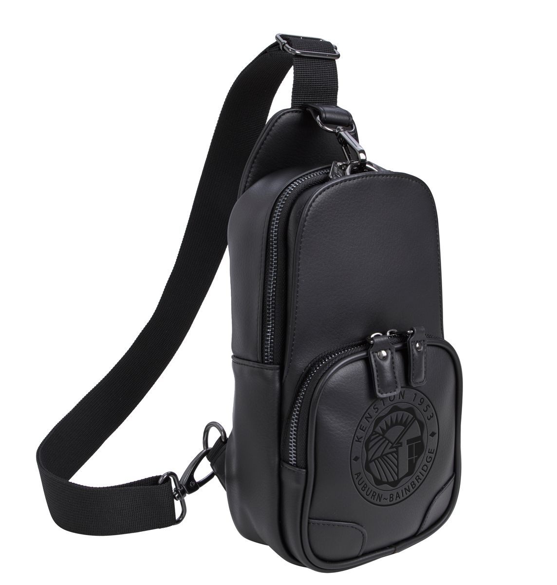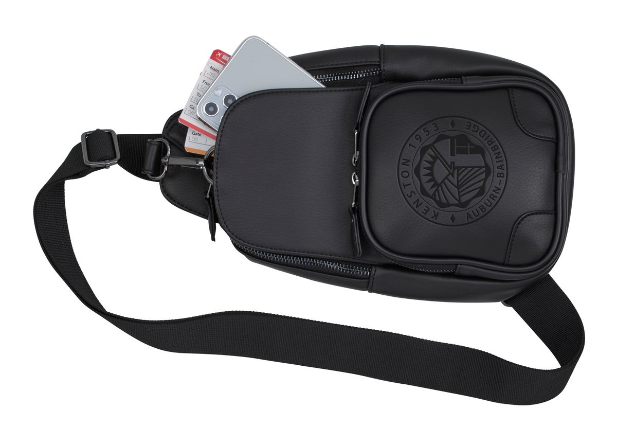 This chic KAPSTON® sling pack is made from recycled PU material for a luxurious leather-like appearance. Designed for ultimate convenience and perfect for everyday adventures, it features a spacious main zippered compartment with a padded sleeve for your tablet and two secure front pockets for easy access to essentials. This bag also boasts a fully padded back panel and an adjustable sling strap with metal hook, allowing you to switch sides for a personalized fit. Made with recycled PU with RPET fabric backing, RPET 210D lining, and RPET webbing. 51% of overall product made of post-consumer recycled PET.